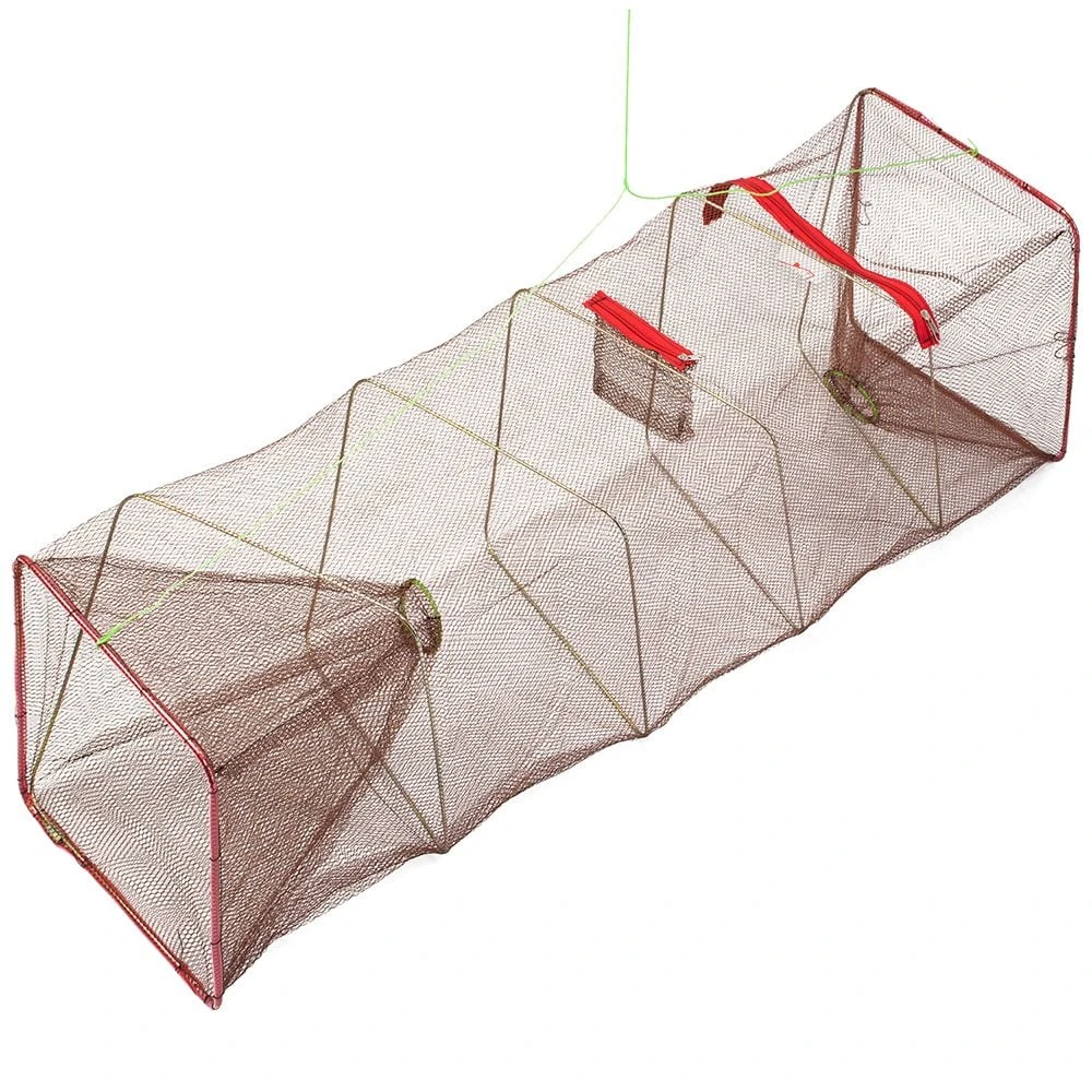 Fangen Sie mit dieser qualitativ hochwertigen Köderfischreuse in idealer Größe von Arapaima® kinderleicht Köderfische, Aale sowie Krebse. Schnell einsatzbereit Mit der geringen Maschenweite von 3 mm können auch optimal kleinere Köderfische gefangen werden, die sich beispielsweise dann gut zum Angeln von Barschen und Zandern eignen. Hier entwischt nichts. Mit den Maßen von ca. 100 x 30 x 30 cm gehört das faltbare stabile Netz zu den größeren Modellen und die Klappfunktion macht es flexibel an jedem Gewässer einsetzbar. Eine tolle Ergänzung für Ihr Angelzubehör Die durchdachte Reuse mit zwei Öffnungen wird in jedem Fall immer den Fang der gewünschten Beute erleichtern. Dabei sorgt die Reißverschlussöffnung dafür, dass die zukünftigen Köder leicht entnommen werden können und der praktische Futterbeutel bietet den optimalen Platz für Lockstoff und Futter, so dass hier absolut kein Kleinfisch, Aal oder Krebs widerstehen kann. Einfache Handhabung Durch den Faltmechanismus kann man die Reuse kompakt zusammenklappen, sollte sie nicht benötigt werden. Dies macht eine platzsparende Lagerung möglich.