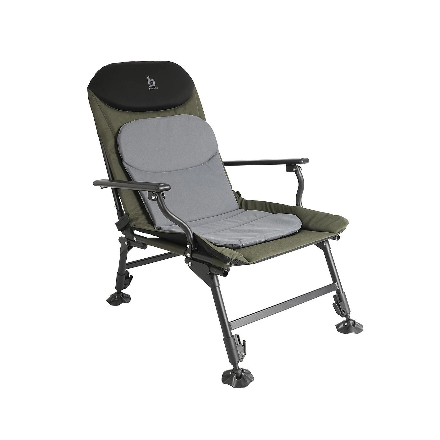Ein sehr stabiler und bequemer Angelstuhl Der Bezug ist aus sehr stabilem 600D Oxford Polyester und der Rahmen aus starkem Stahl. Die Rückenlehne ist durch Klemmen auf der Rückseite stufenlos verstellbar, wodurch der Stuhl jederzeit in die gewünschte Position gebracht werden kann. Ausgestattet mit einem herausnehmbaren Kissen. Der Angelstuhl eignet sich durch die unabhängigen verstellbaren und verstärkten Füße. Der Angelstuhl ist komplett faltbar.