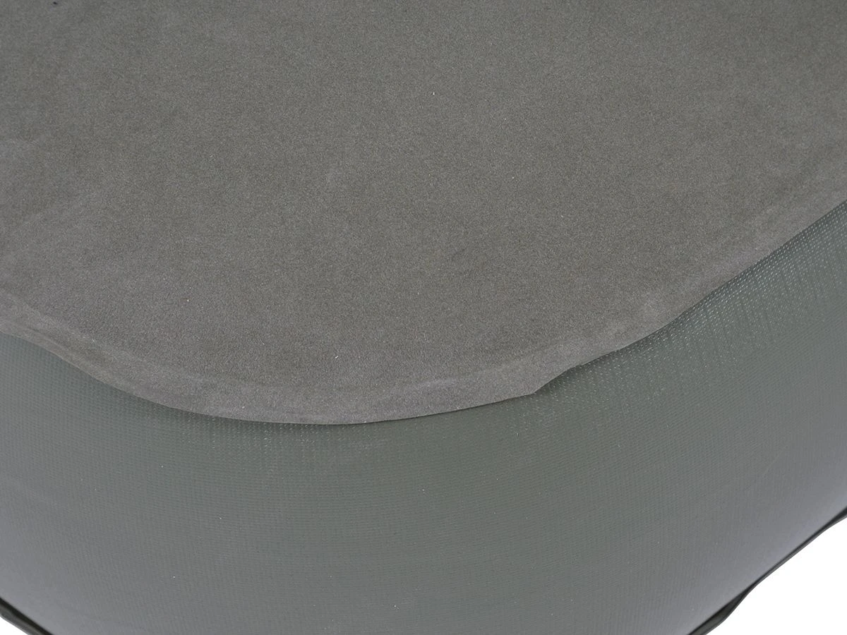 Die Luftmatratze besteht aus robustem PVC mit einer weichen Veloursschicht auf der Oberseite. Diese Schicht fühlt sich weich auf der Haut an und wenn Sie ein Spannbettlaken verwenden, bleibt es an Ort und Stelle.