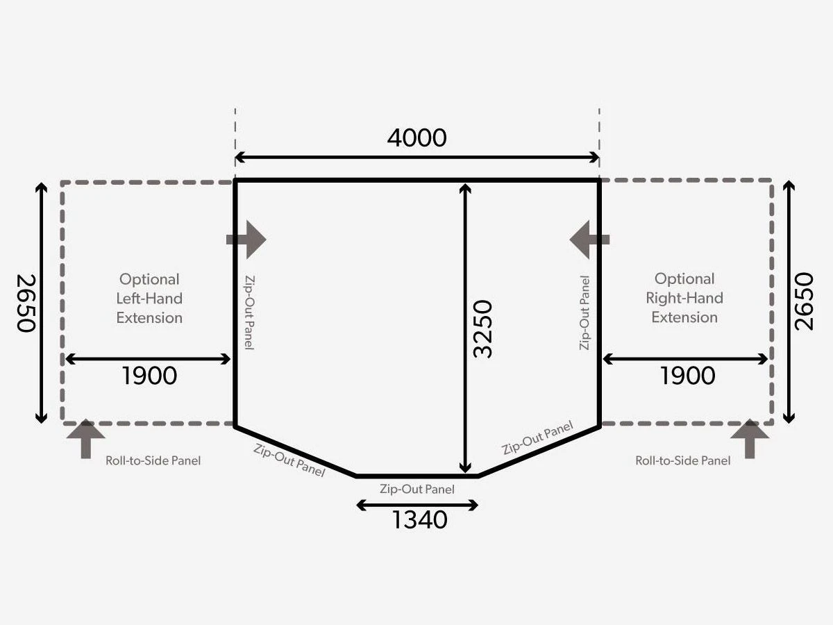 Das Vorzelt ist 400 cm breit. Das bedeutet, dass Ihr Wohnwagen über eine gerade Schiene von mindestens 400 cm verfügen muss, um das Vorzelt aufstellen zu können. Sie möchten das Vorzelt in die Schiene Ihrer Markise schieben? Dann muss die Markise mindestens 400 cm lang sein.