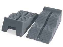 Das Set besteht aus zwei Teilen und einer beiliegenden Tragetasche. Die Auffahrkeile sind leicht und widerstandsfähig. Sie haben eine rutschfeste Oberfläche, sind UV-beständig und leicht zu reinigen. Die maximale Tragfähigkeit beträgt 8 t.