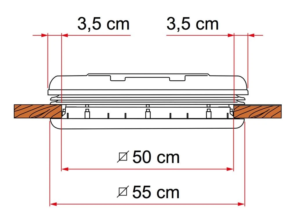 Die Fiamma Vent 50 wird ohne Montagematerial und -satz geliefert.