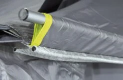 Extra robuste Reißverschlüsse mit Regen-Abdeckung gegen Feuchtigkeit. 4 Neon gelbe verstellbare Sturmbänder und Abspannleinen sind in der Dämmerung gut sichtbar.