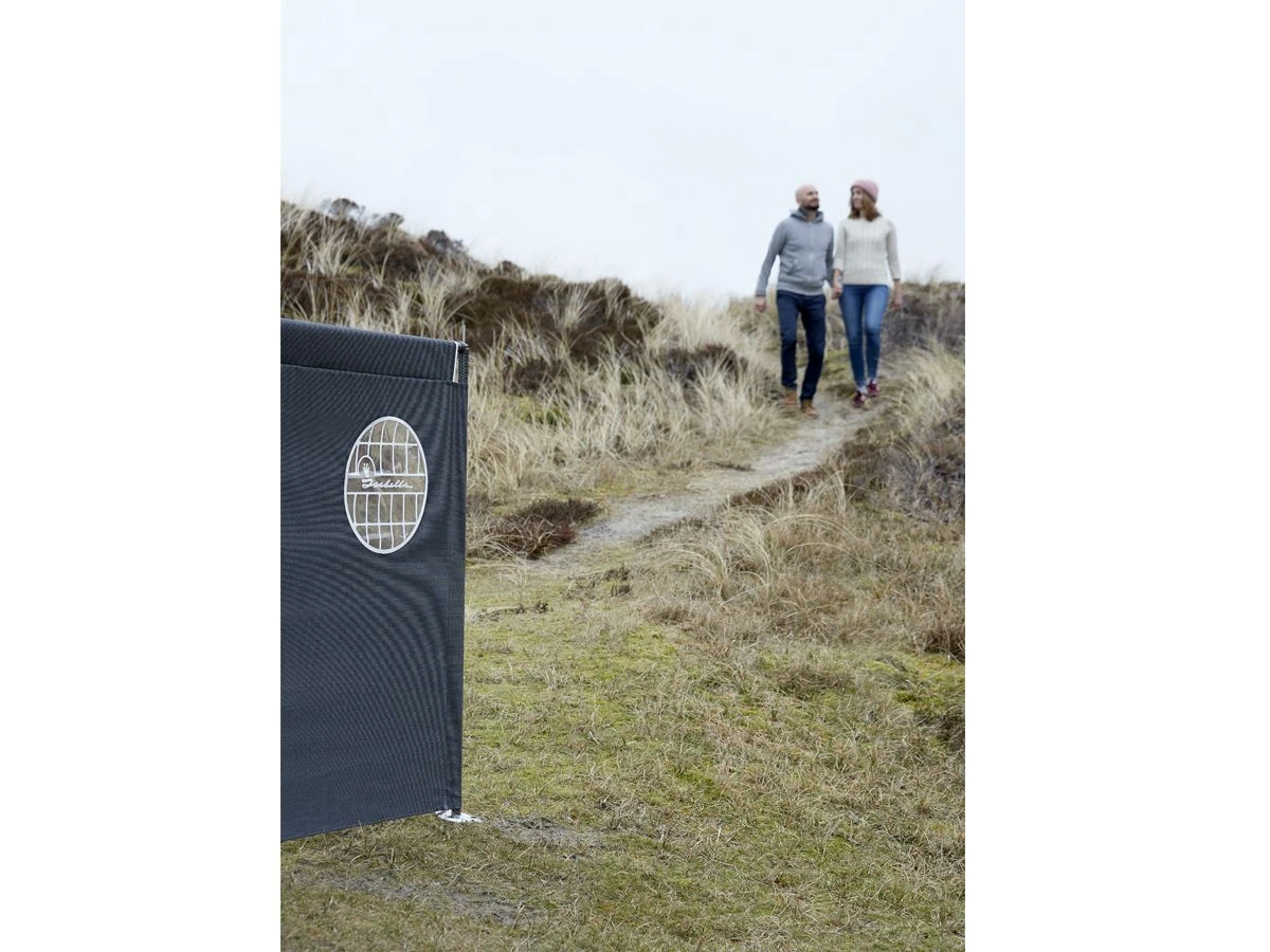 Der North Windschutz ist dank seiner Farbe sehr stilvoll und leicht zu kombinieren mit den Markisen der Serie Isabella North.
