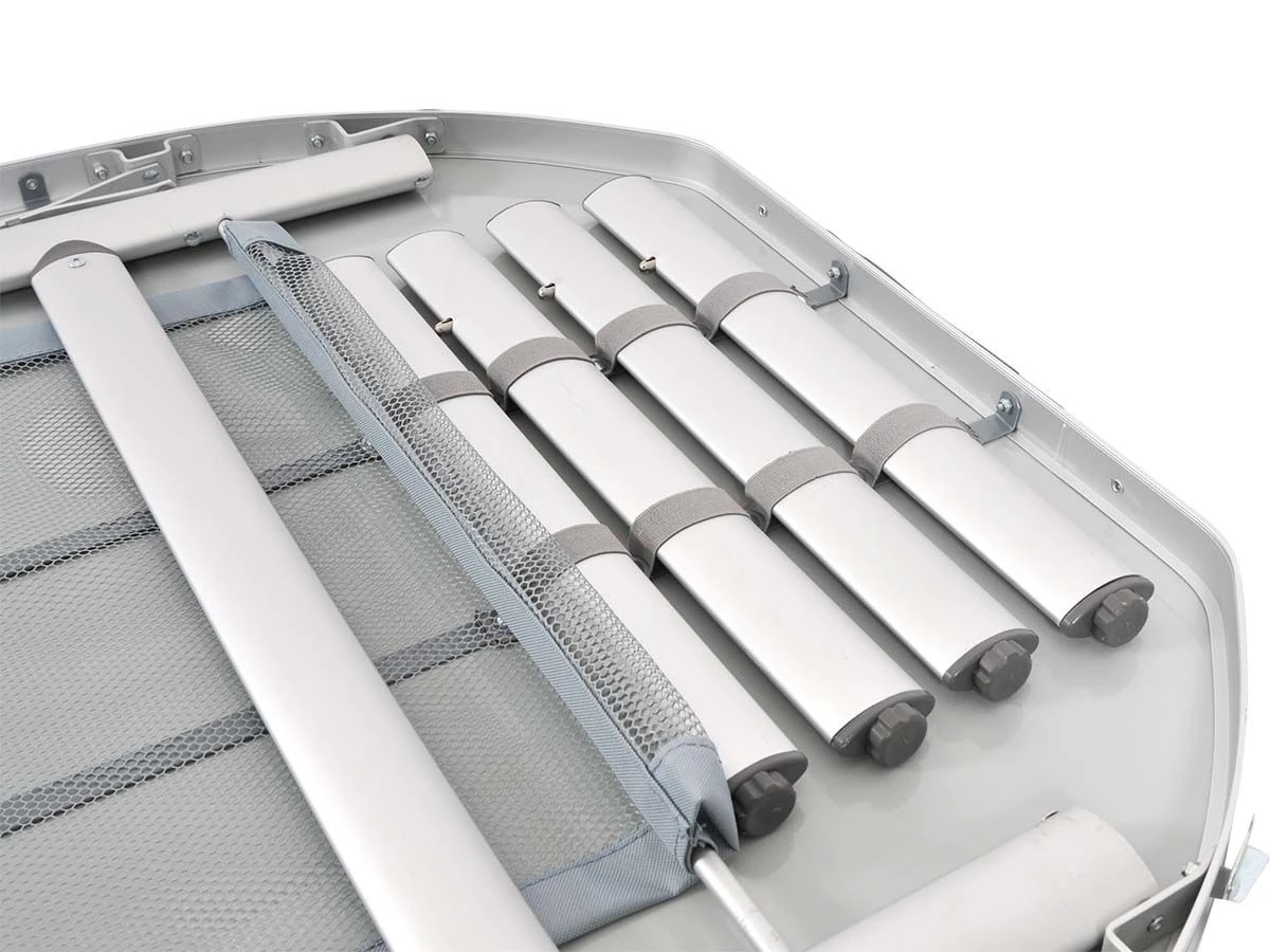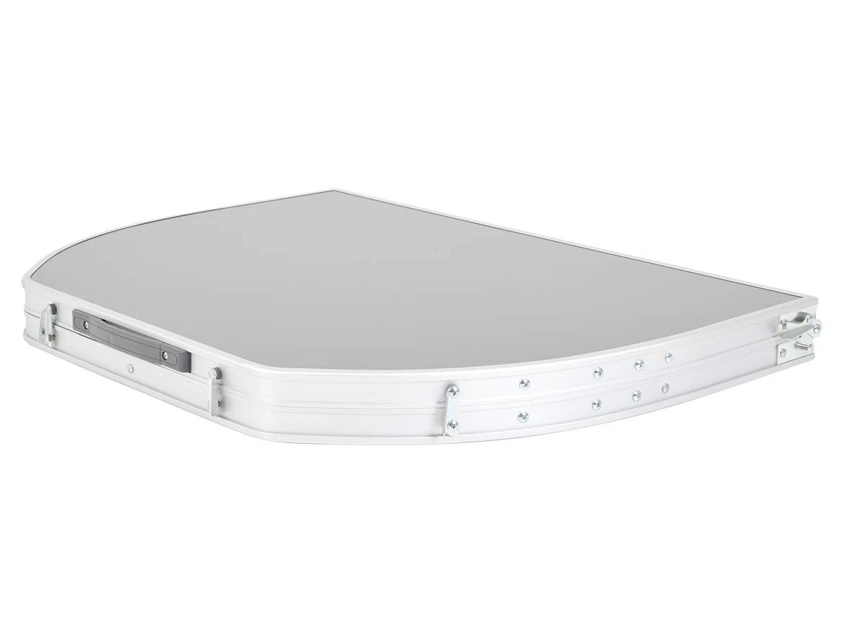 Unter dem Deckel befindet sich ein praktisches Netz, damit Sie Ihr Buch oder Ihre Zeitschrift immer griffbereit haben. Nach dem Gebrauch kann der Tisch kompakt zusammengeklappt werden. Die teilbare Platte ermöglicht es, den Tisch wie einen Koffer zu falten.