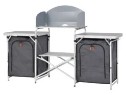 Bereiten Sie gerne leckere Mahlzeiten auf dem Campingplatz zu? Dann ist die Obelink Tricias Luxe die ideale Campingküche für Sie. Die Tricias besteht aus 3 Arbeitsplatten, von denen die Mitte für Ihren Herd bestimmt ist, so dass Sie auf beiden Seiten Arbeitsfläche haben. Die beiden Außenschränke sind mit einem Regal ausgestattet und können einfach verschlossen werden.