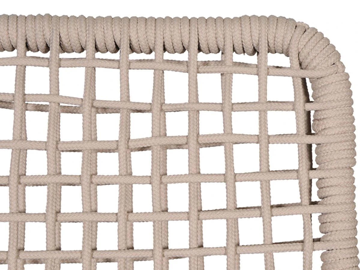 Dieser stapelbare Diningstuhl besteht aus einem Aluminiumrahmen mit einer Sitzfläche aus Tauwerk. Der Stuhl hat eine Größe von 60 x 52 x 89 cm und eine Sitzhöhe von 47 cm.