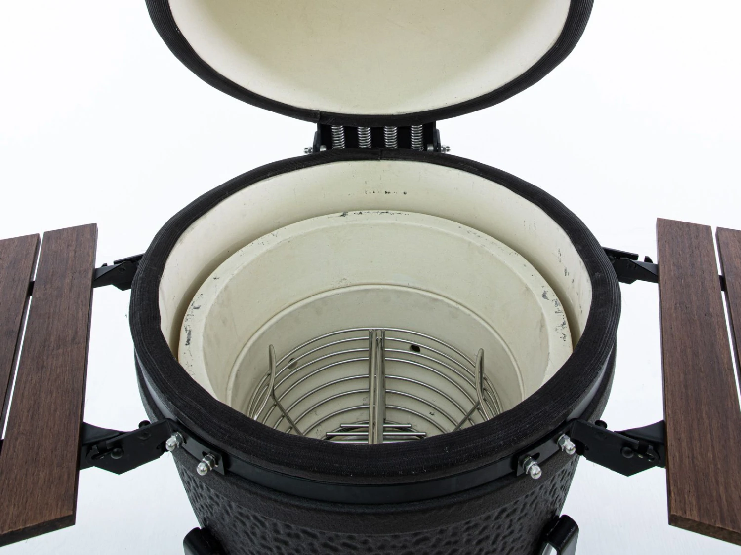 Der Kamado unterscheidet sich in seiner Vielseitigkeit von einem gewöhnlichen Barbecue. Aufgrund der guten Isolierung ist eine sehr genaue Temperaturregelung möglich und Sie können auf dem Keramikgrill grillen, räuchern, langsam garen, schmoren und Ihre eigene Pizza backen. Der Kamado wird auf Holzkohle betrieben, was dem Produkt einen echten Holz- und Räuchergeschmack verleiht.