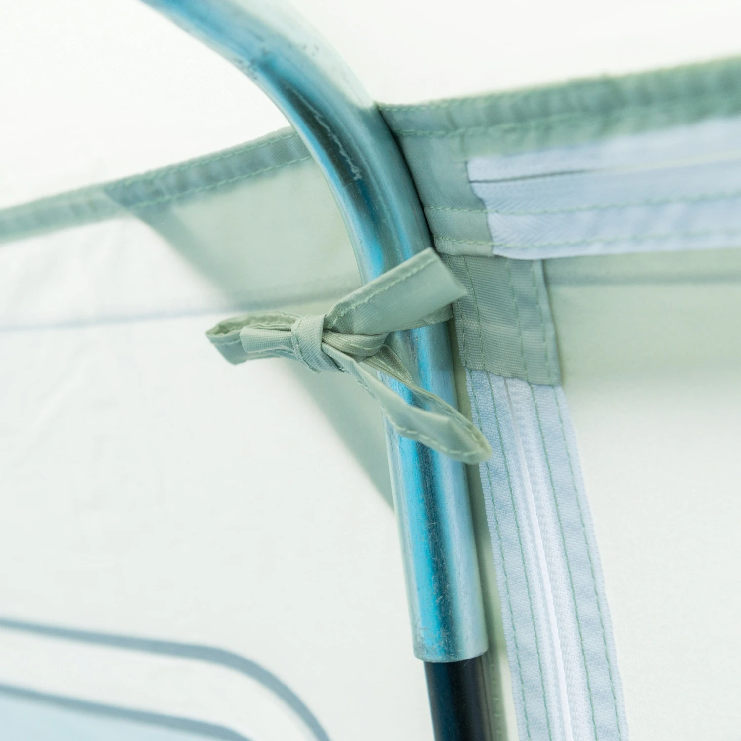 Dieses VW-Campingzelt in Blau ist das ideale 4-Personen-Schlafzelt in Form eines T1. Das Zelt hat das gleiche Design und den gleichen Maßstab wie der echte T1-Bus und verfügt über die gleichen Türöffnungen wie das Original. Das Außenzelt misst 398 x 189 x 155 cm und ist wasserdicht (Dach 3000 mm und Seiten 1000 mm). Das Innenzelt misst 388 x 182 x 145 cm und verfügt über praktische Aufbewahrungstaschen in den Seitenwänden. Dank der beiliegenden klaren Anleitung lässt sich dieses VW T1-Zelt leicht aufbauen. Außerdem wird das Zelt mit einer praktischen Tragetasche geliefert, so dass die Abmessungen in der Tasche nur 88 x 24 x 24 cm betragen.