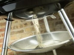 Die Wanne und der Deckel des Grills bestehen aus porzellanemailliertem Aluminium. Der Grillrost besteht aus verchromtem Stahl. Dieses Material kann mit einer speziellen GrillbĂŒrste leicht gereinigt werden. Unter dem Material befindet sich ein schwerer, hochwertiger Holzkohlerost. Der Deckelgriff hat einen Hitzeschutz, damit Sie ihn greifen können, ohne sich zu verbrennen.